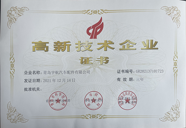 2020年青岛宇航汽车配件有限公司荣获“专精特新”企业,2021年12月14日获得高新技术企业